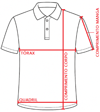 ATENÇÃO: As medidas devem ser feitas com a camisa bem esticada sob uma superfície plana, preferencialmente com uma fita métrica.