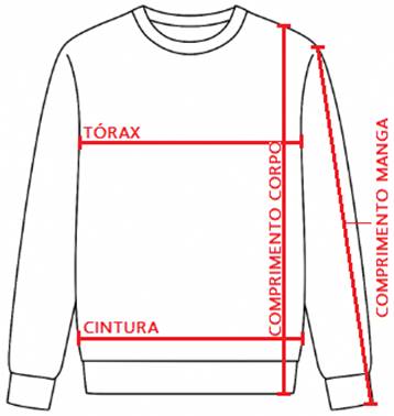 ATENÇÃO: As medidas devem ser feitas com o moletom bem esticada sob uma superfície plana, preferencialmente com uma fita métrica.